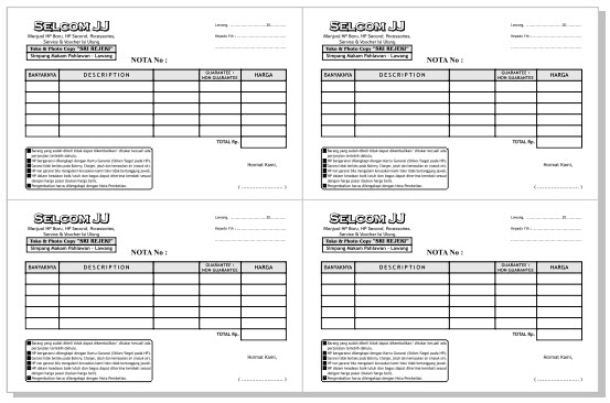 Disini sebagai contoh aku akan membuat numerator untuk Nota ¼ Folio (1 kertas folio dibagi 4) dan 1 blok (1 bendel setelah dijilid) nota berisi 50 lembar dan di rangkap 2 (two ply).